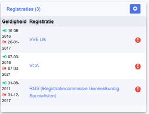 Indien een registratie is verlopen, verschijnt er een uitroepteken.