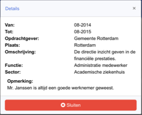Hier kan de kandidaat werkervaringen bekijken en toevoegen. De kandidaat ziet de volgende velden: